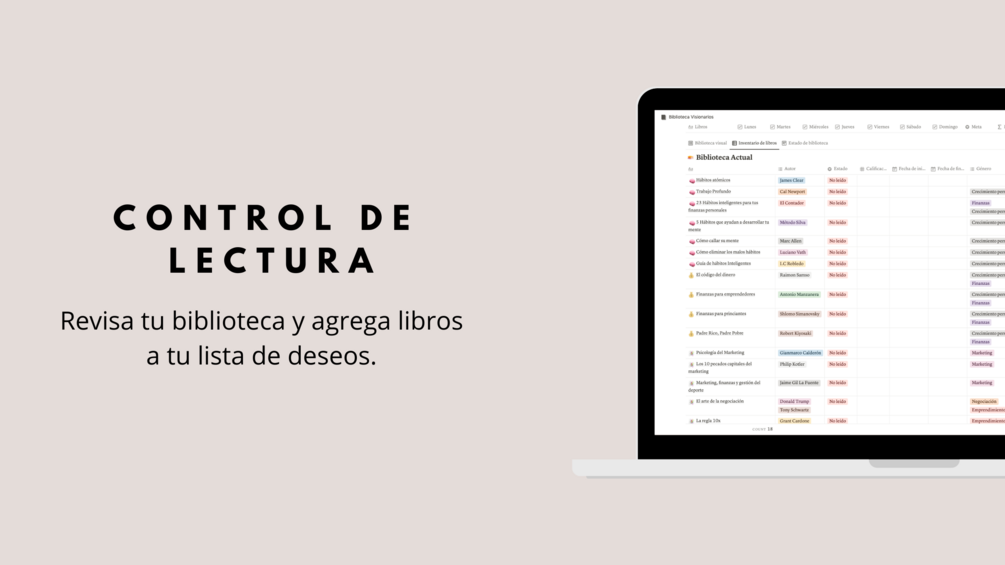 Esta plantilla te permitirá llevar un control de los libros que estas leyendo o deseas leer, para poder motivarte y seguir tu progreso de lectura.