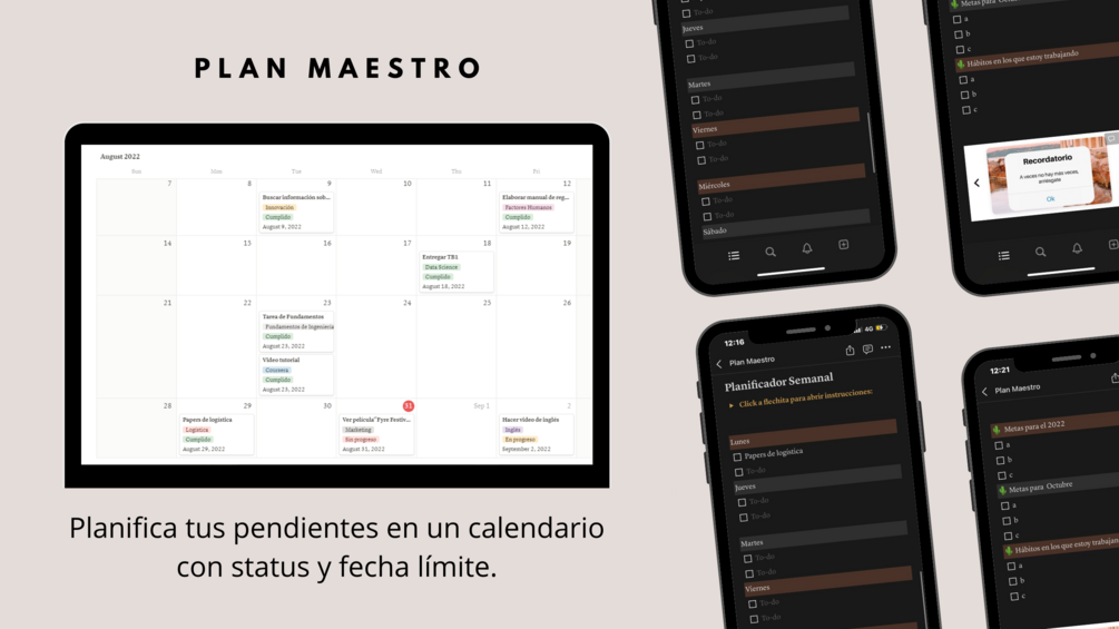 - Planifica tus pendientes en un calendario.